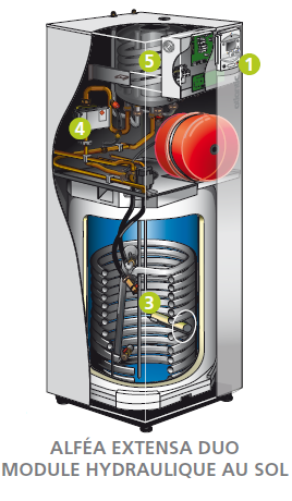 - Ενσωματωμένος κυκλοφορητής inverter ενεργειακής κλάσης Α, δοχείο διαστολής και βαλβίδα ασφαλείας.