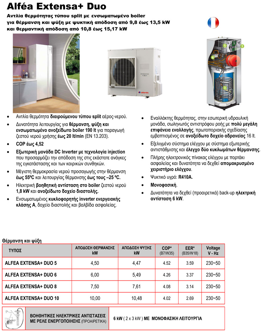 - Δυνατότητα να δεχθεί (προαιρετικά) back-up ηλεκτρική αντίσταση 6 kW.